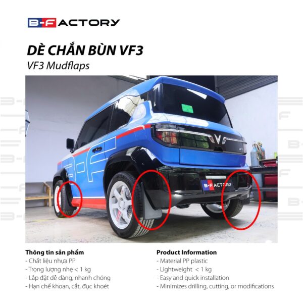 Với những người thường xuyên di chuyển trong đô thị hoặc khu vực có nhiều bùn đất, chắn bùn VF3 B-Factory gần như là phụ kiện không thể thiếu.