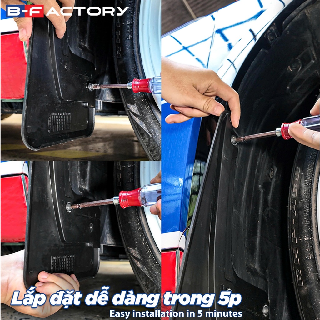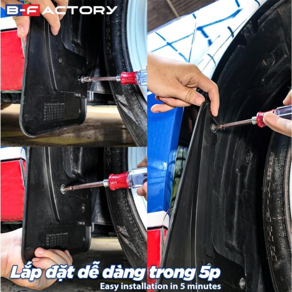 Việc lắp chắn bùn VF3 khá đơn giản. Hầu hết các sản phẩm đều sử dụng vị trí lỗ có sẵn trên xe, không cần khoan đục hay can thiệp vào thân vỏ. Người dùng có thể tự lắp tại nhà hoặc nhờ kỹ thuật viên hỗ trợ trong thời gian ngắn.